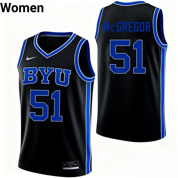 • Womens Jared McGregor Black BYU Cougars #51 College Basketball 2025-26 Jersey